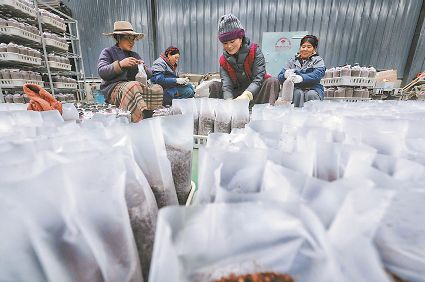 還有村民進(jìn)了產(chǎn)業(yè)園務(wù)工。帕他志瑪、扎西翁姆、白瑪、確志、斯郎卓呷都在產(chǎn)業(yè)園務(wù)工,月平均收入可達(dá)3000元以上。在八角樓鄉(xiāng),像帕他志瑪這樣在“家門(mén)口”打工、全家人掙錢的當(dāng)?shù)卮迕窦彝ゲ辉谏贁?shù)。40多位村民在產(chǎn)業(yè)園長(zhǎng)期就業(yè),100多位村民參與產(chǎn)業(yè)園的季節(jié)性就業(yè),這都帶動(dòng)了松茸村、木澤西村、維地村的貧困群眾實(shí)現(xiàn)高質(zhì)量脫貧?,F(xiàn)代立體高效食用菌產(chǎn)業(yè)的建立讓當(dāng)?shù)卮迕竦谝淮螄L到了一天掙上百塊錢的甜頭。