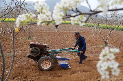 3月30日,在湖南省永州市新田縣驥村鎮(zhèn)黃公塘村,村民在田間用耕牛犁地。