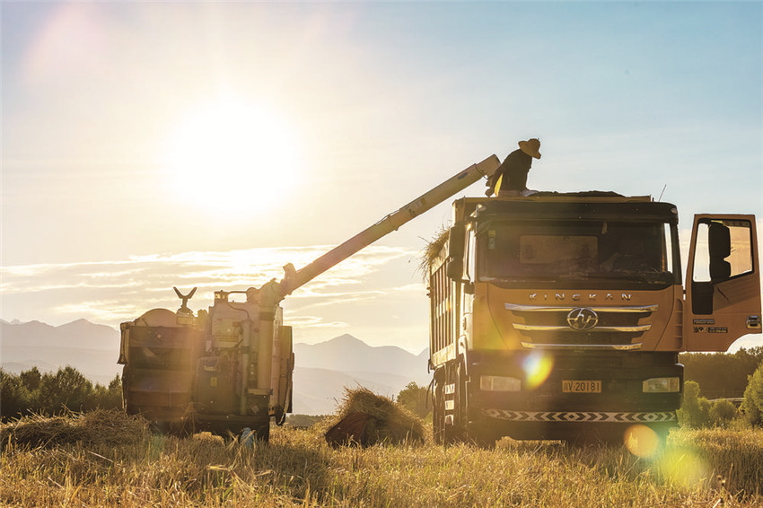 一望無邊的農(nóng)田里,谷粒飽滿,一陣風(fēng)吹來,金黃色的青稞隨風(fēng)起舞。收割機(jī)正來回穿梭,不一會兒就裝了滿滿一車……入秋后,甘孜縣迎來秋收時節(jié),到處呈現(xiàn)出一派豐收的景象。