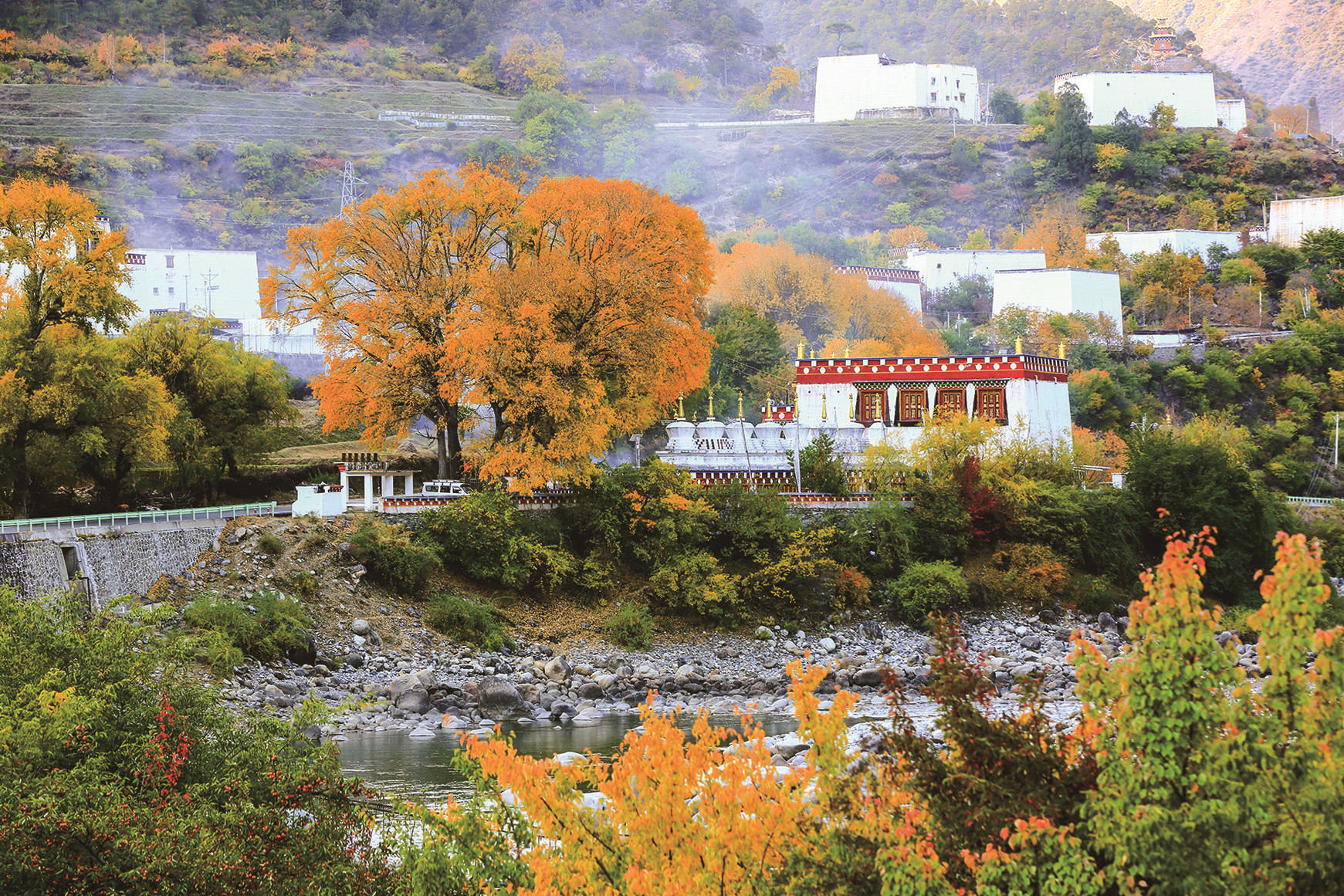 深秋時節(jié),香巴拉鄉(xiāng)城處處是美景,從高山到天邊地角再到房前屋后,目之所及是色彩斑斕的詩意畫卷。在一年的四季中,秋季是最為與眾不同,特別是進入深秋時節(jié),來到鄉(xiāng)城,仿佛置身于一個立體畫廊,遠處是潔白的雪上,身邊是不同林木,青黃橙紅白色組合成的美麗圖畫,別具風(fēng)情,秋天的一切美好盡在其中。