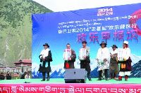 上午十點(diǎn)半,隨著一陣歡快的音樂(lè)聲,康巴衛(wèi)視2014年“走基層”歡樂(lè)藏區(qū)行活動(dòng)在甲根壩鄉(xiāng)木雅村正式拉開(kāi)序幕。
