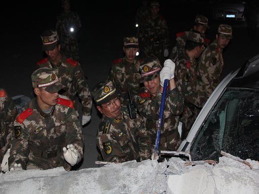 地震發(fā)生當天,武警甘孜州森林支隊滿服役期的士兵已經摘下警銜,等待宣布退伍命令。突如其來的災難讓157名滿服役期戰(zhàn)士按捺不住焦急的心情,他們紛紛請纓,再穿軍裝上一線。楊晨、翁小鵬是眾多滿服役期戰(zhàn)士中的一員。