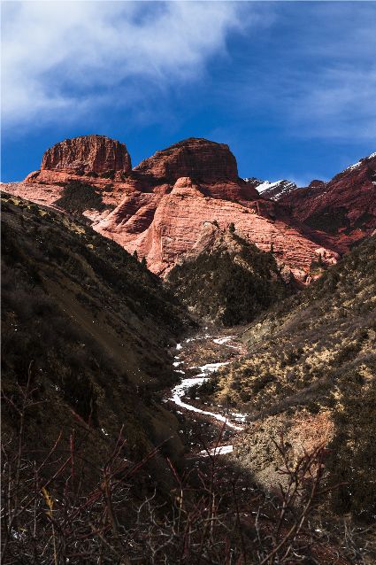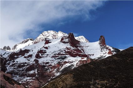 或許,新龍丹霞就是在守望這片秘境。綿延三十多公里的紅色,以新龍縣銀多鄉(xiāng)阿色一村為中心,凝固千姿百態(tài),隆起峻拔偉岸。科考的看見了丹霞地貌景觀要素、發(fā)育程度、組合方式,轉(zhuǎn)神山的信眾看見了觀音、金剛、佛塔、海螺,旅游的看見了神奇、壯觀和文化……