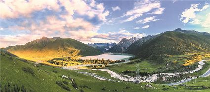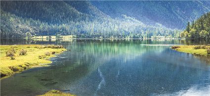 一天之中,數(shù)清晨和傍晚的海子最美,晨光中,湖水猶如鏡面般倒映著周?chē)木拔铮焐珴u漸亮了,周?chē)木拔镆苍?“鏡子”中漸漸清晰起來(lái),特別是那些雪山下的海子,當(dāng)太陽(yáng)給雪山鍍上一層玫瑰金,倒影更美。傍晚,落日的余暉灑在海子和它周?chē)木拔锷?,又是另一種美,天上再有幾縷晚霞,更絕。四季里,就要看秋天的海子,因?yàn)檫@時(shí)海子周?chē)木吧亲蠲赖?,紅葉、黃葉、綠葉相間,便襯托得海子更美。