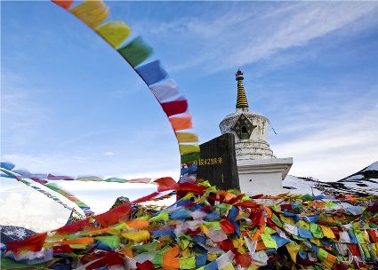 回首山隘處,白塔矗立,彩幡獵獵起舞。一聲破霧的汽笛嗚叫隨風(fēng)而至,喚起了大山深藏的靈動(dòng),奢侈的想象便從歲月的岸頭涌向洞開的現(xiàn)實(shí)。千年蒼桑古道遺棄于草荒,驚起的褐鷹盤旋于半空不知所措。誰說大山無語?霎間,云奔日耀,眩目的光瀑中流動(dòng)的畫頁迎面涌來,層出不窮。