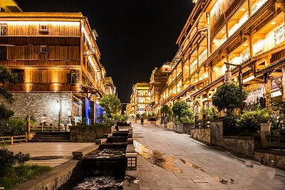 磨西古鎮(zhèn)位于四川省甘孜州瀘定縣,有一條長約1200米的古街道“磨西老街”,街邊房屋保持著典型的川西建筑風格,木制樓閣錯落有致,青瓦飛檐、石板路流光,街邊特色小店林立。