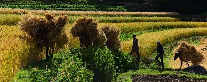 鄉(xiāng)村振興新時代,歡樂共慶豐收節(jié)! 春種秋收,春華秋實。當農村延續(xù)了成百上千年的文化與美景、凝結了無數(shù)辛勤與智慧的豐收果實和農民對美好生活的期待,金秋九月,五谷豐收,瓜果飄香。人們在收獲的喜悅中迎接“中國農民豐收節(jié)”。寒來暑往,秋收冬藏。笑容寫在農牧民臉上,幸福留在農牧民心里,處處都似披了一身霞光。