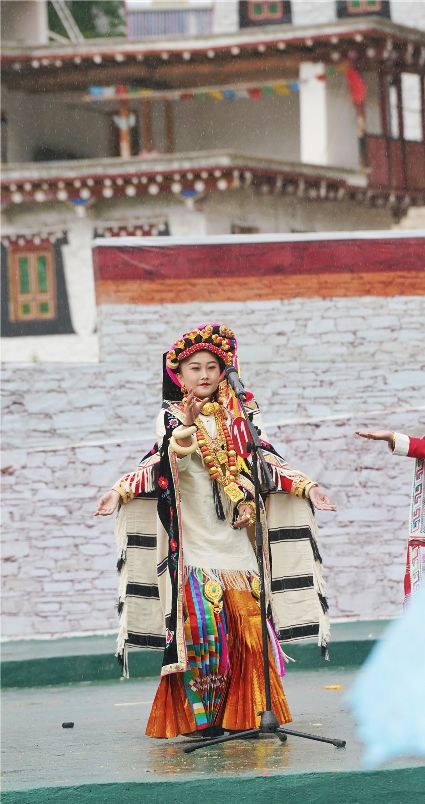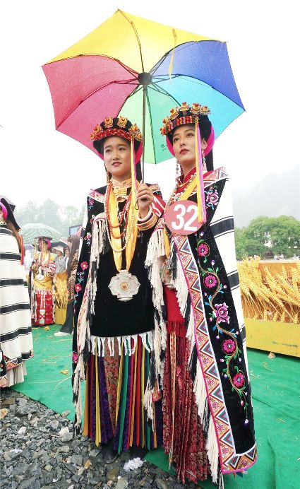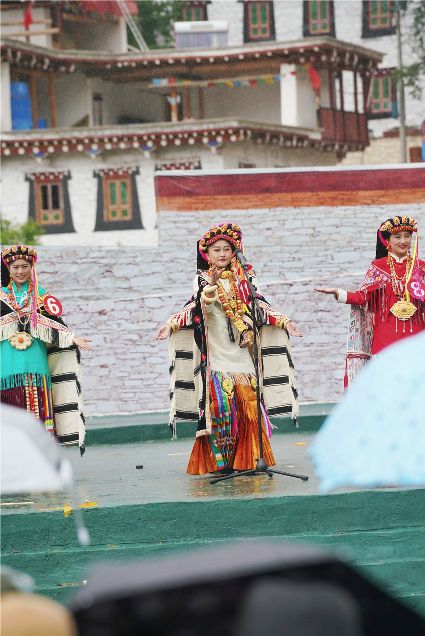 比賽開始不久,現(xiàn)場(chǎng)下起了小雨,但絲毫沒有影響熱烈氣氛。臺(tái)上的佳麗們,略施粉黛,穿著承載著嘉絨風(fēng)情文化的民族盛裝,自我介紹,優(yōu)雅展示。臺(tái)下,則是鄉(xiāng)民齊聚,熱情高漲。大家紛紛到場(chǎng),為佳麗們加油助威。據(jù)介紹,丹巴出美女始于漢代的東女國(guó)時(shí)期。古時(shí)每年農(nóng)作物收獲的時(shí)節(jié),丹巴各村各寨都要舉行盛大的選美和祭祀活動(dòng)。