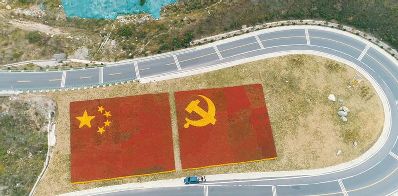 7月1日是中國共產(chǎn)黨98周歲的生日。四川甘孜藏族自治州瀘定縣用23萬多株鮮花,在雅康高速路瀘定連接線出口處擺了鮮紅的黨旗、國旗造型,以此表達對黨的感情。