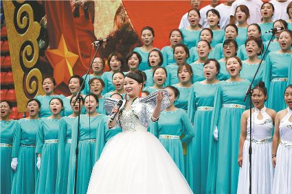 宣傳文化系統(tǒng)代表隊演唱《唱支山歌給你聽》。