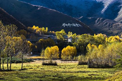 車沿著川藏公路南線前行,一條淺淺的小河與公路相依相偎地蜿蜒流淌。此時(shí)的新都橋,金燦燦的山野,不打折的黃金季節(jié),美得不要不要的。