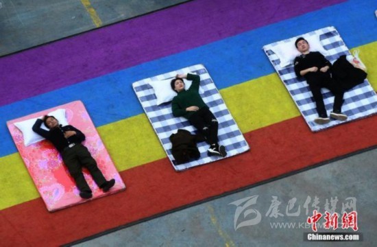 資料圖:市民用露天大睡公益行為藝術(shù)的方式迎接世界睡眠日的到來(lái)。 陳超 攝
