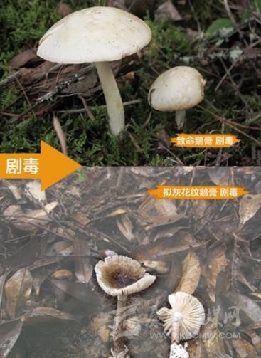 含劇毒的致命鵝膏和擬灰花紋鵝膏。圖片來源:中國(guó)疾病預(yù)防控制中心