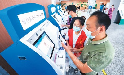 居民在浙江省湖州市吳興區(qū)人民醫(yī)院使用智慧醫(yī)療多功能自助機支付醫(yī)藥費。新華社記者 徐昱 攝