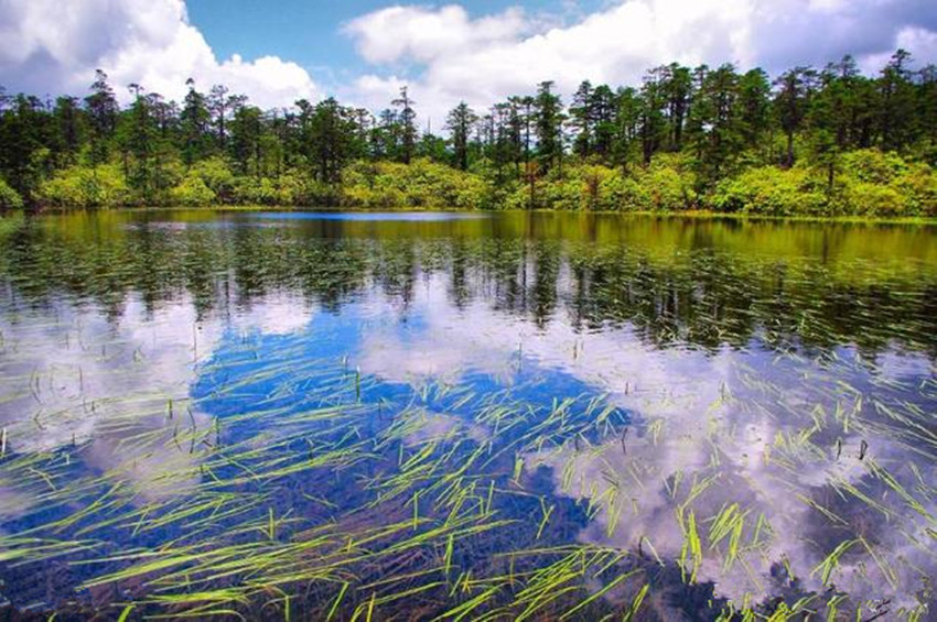繼續(xù)前行,下一站既是木格措。木格措漢名:野人海,水源來自于身后女媧雪山的積雪融水,水質(zhì)清冽,能見度極高,湖四周群山環(huán)抱,紅海、黑海、白海等幾十個小海子圍繞在周圍,如眾星拱月般。木格措風(fēng)光秀美,“臥虎觀月”、“雙霧墜海”等景觀最為獨(dú)特。