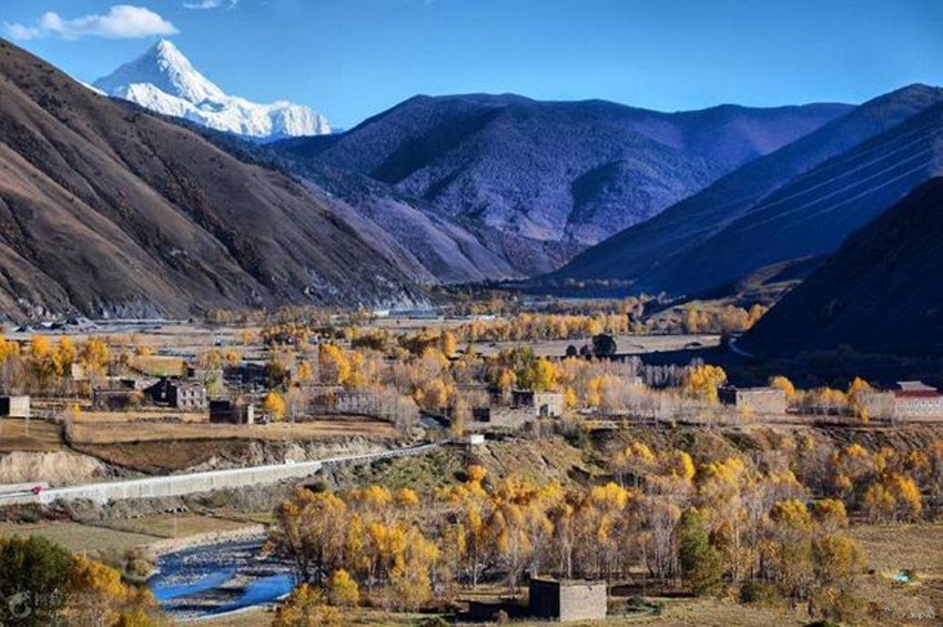 新都橋又稱東俄羅,位于318國道川藏南北線的分叉路口,號稱“攝影家的天堂“。在這可以拍攝到無垠的草甸,曲折的溪流,金黃的秋葉,山坡上大片在覓食的牛羊,散落著的藏族村寨。隨便一按快門都能得出一張絕美的風(fēng)景照。