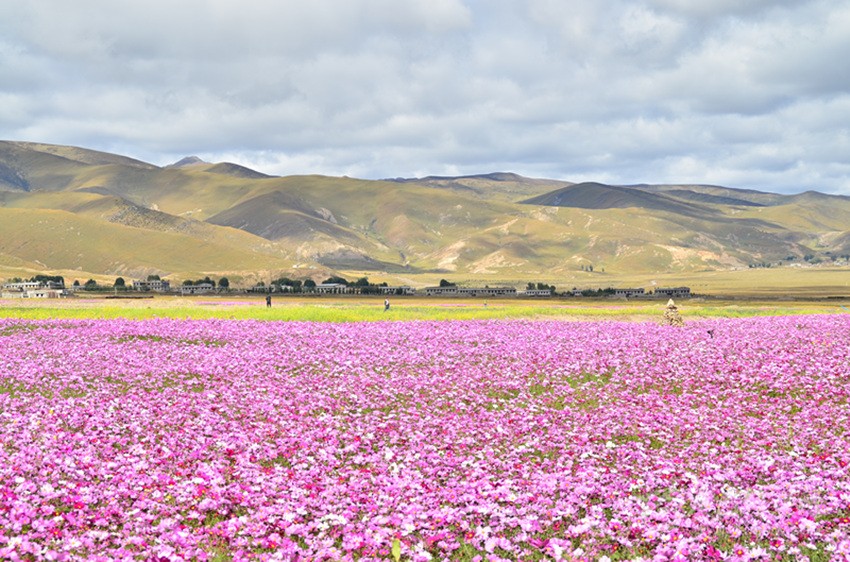 折西萬畝花??偯娣e10030畝,主要包括新都橋鎮(zhèn)(拔桑二村、柏桑一村、上柏桑二村、新一村)、塔公鎮(zhèn)(塔公村、夏馬龍村)、甲根壩鄉(xiāng)(木雅村)3個鄉(xiāng)鎮(zhèn)、7個行政村。