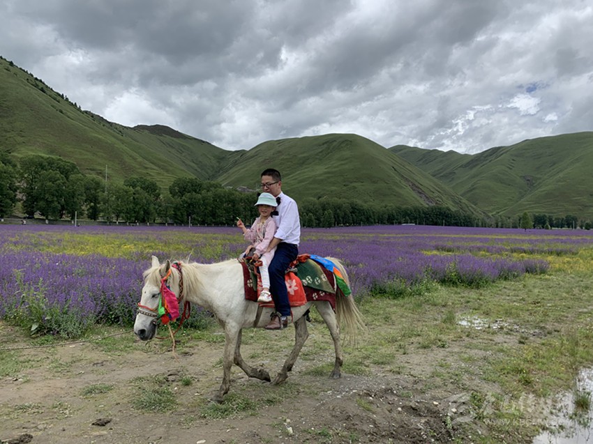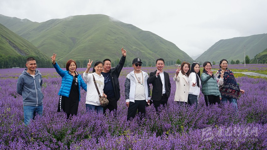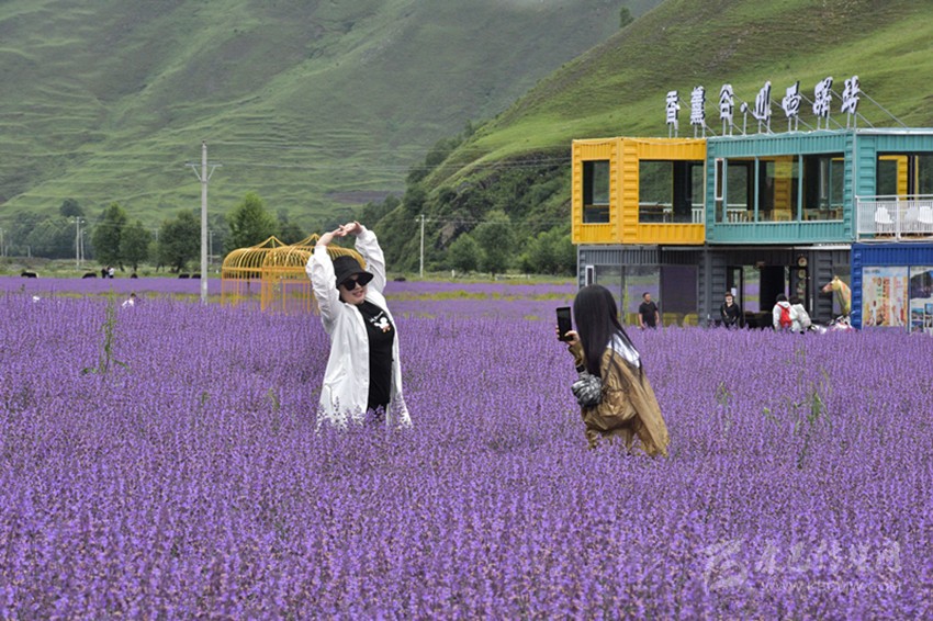 是時,微風乍起,黛山環(huán)抱下的花海漾蕩著瀲滟的紫光,裹挾著無邊的浪漫和淡淡的芳香,向棧道上的游人涌來,彌漫到腳邊、四溢到身旁——踏訪這個藏在川西高原的“普羅旺斯”詩境實地,一幅美不勝收的“夏日高原送爽圖”令人心迷神醉。