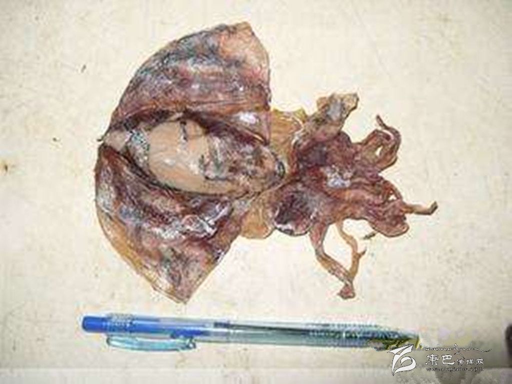 用手指用力按一下胴體的中部,如果有堅(jiān)硬感,就是烏賊魚,如果較軟,就是魷魚。因?yàn)闉踬\魚有一條像船型的硬烏賊骨,而魷魚僅有一條葉狀的透明薄膜橫亙于體內(nèi),所以手感不同。另外,魷魚一般都體形細(xì)長,末端呈長菱形,肉質(zhì)鰭分列于嗣體的兩側(cè),倒過來觀察時,很像一只“標(biāo)槍頭”,而烏賊魚外形稍顯肩寬,與魷魚的其他特征也有區(qū)別。