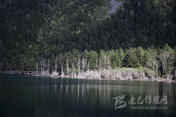 藥池沸泉一側是風景秀美的俄瑪錯,上頂藍天白云和雪山,下踏森林綠水,讓人透心舒暢。