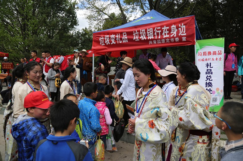 曬佛儀式之后是第三屆“梵音”音樂會(huì)。音樂會(huì)在由州歌舞團(tuán)演繹的面具舞《祈??刀ā分欣_序幕,13個(gè)表演節(jié)目中,既有透人心靈的梵音演唱和二胡演奏,又有激蕩人心的說唱表演和流行演唱,還有質(zhì)樸脫俗的原生態(tài)民歌演唱和群舞鍋莊,時(shí)尚和古樸、流行與傳統(tǒng)都在這里得到了集中展現(xiàn)。原生態(tài)歌曲《溜溜調(diào)》,原創(chuàng)歌曲《康定先生》《新編木雅鍋莊》等極具康定特色的節(jié)目更是將情歌故里的人之美、景之美、文化之美展現(xiàn)得淋漓盡致。將近90分鐘的表演高潮迭起、精彩紛呈,現(xiàn)場喝彩聲、歡呼聲此起彼伏,手機(jī)、單反、平板、航拍交相輝映,忙著錄視頻、拍照片、發(fā)微博、曬動(dòng)態(tài)的人更是比比皆是在。除了精彩的表演,現(xiàn)場身著華麗盛裝的康巴美女也是一道靚麗的風(fēng)景,引得無數(shù)中外游客爭相與之合影留戀。從四面八方趕來叫賣、推銷各種商品的店商和攤販也為此次活動(dòng)增添了不少生氣。此外,康定團(tuán)市委還特意在活動(dòng)現(xiàn)場開展了“垃圾變禮品”活動(dòng),通過贈(zèng)送禮品鼓勵(lì)大家清理垃圾,此次活動(dòng)雖然人流巨大但場地衛(wèi)生異常良好。