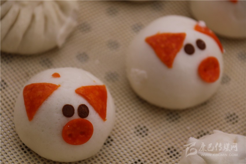“這個(gè)包子也長(zhǎng)得太可愛了吧!”記者順著旁邊的驚呼聲看去,五歲的肖紅拿著一個(gè)做成小豬樣的包子對(duì)著她奶奶說(shuō)。趕緊走近店里,記者也來(lái)了份兒奶黃餡兒的卡通小豬包子,一口咬下,奶黃順著缺了的口子流出來(lái),趕緊吸了一口,甜甜的味道瞬間在舌尖化開。為了滿足記者的好奇心,老板介紹說(shuō):“將面團(tuán)捏好搟薄,再包入餡,收口朝下,像包包子那樣捏好口,捏出有點(diǎn)像豬的型狀,再撕一點(diǎn)黃色面團(tuán)做個(gè)豬鼻子,用一根筷子按下去成兩個(gè)鼻孔,再捏兩只耳朵和一根尾巴,準(zhǔn)備些黑芝麻,做眼晴,拿根筷子點(diǎn)點(diǎn)水沾一個(gè)芝麻放在豬身上,可愛的卡通小豬包就做好了?!钡赇伹皵D滿了小朋友,老板告訴記者:“這種卡通包子之所以受小朋友的喜歡不僅是因?yàn)槠淇蓯鄣目ㄍㄍ獗?,而且我們所有的卡通包子餡兒都是甜的。我們精準(zhǔn)定位,投孩子們所好,取得的成效還不錯(cuò)。這次來(lái)參加美食節(jié),只帶來(lái)了小豬和刺猬兩種卡通形象的包子,賣得挺好,準(zhǔn)備在接下來(lái)的幾天將小猴子等卡通形象的包子也帶過(guò)來(lái)。”