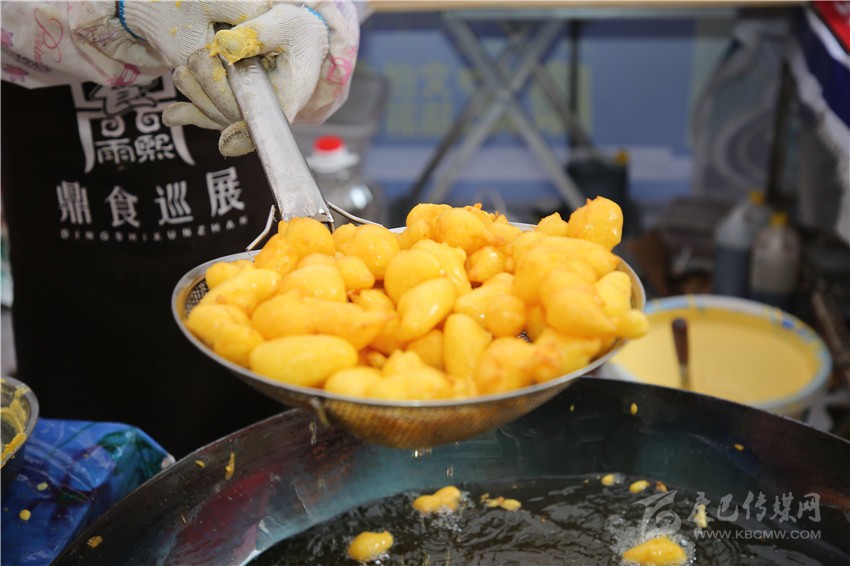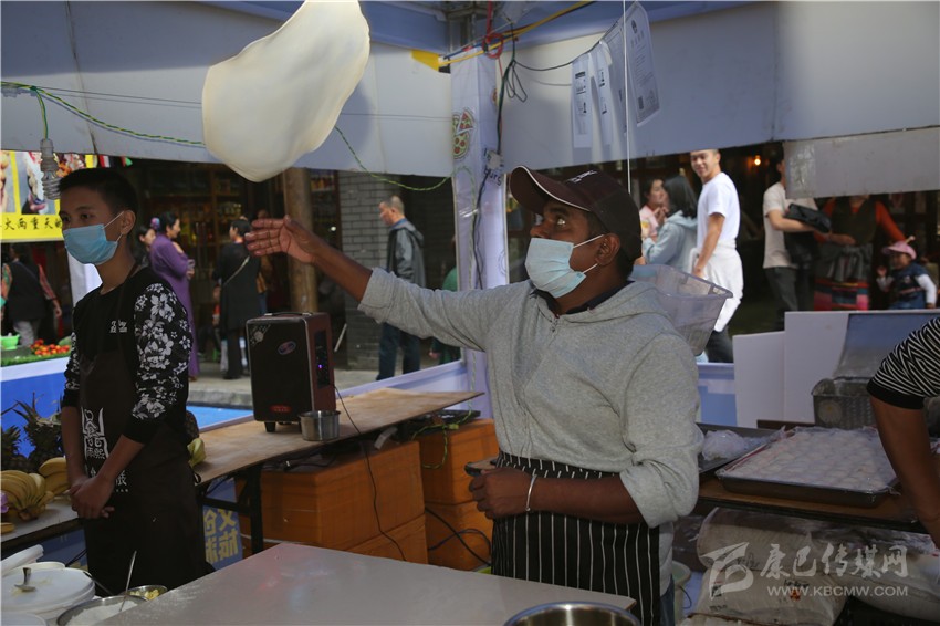要說(shuō)美食節(jié)最炫酷的店鋪,那非“印度飛餅”莫屬了。記者穿過(guò)層層圍觀的人群,點(diǎn)了一份菠蘿飛餅。只見廚師將捏好的面團(tuán)在案板上揉了幾下,便捏緊面餅一端按順時(shí)針方向轉(zhuǎn)動(dòng),手里的面餅越轉(zhuǎn)越大,越轉(zhuǎn)越薄,幾近透明,接著就是放餡料,稍做煎炸,切割裝盤,短短一分鐘內(nèi),一氣呵成。記者接過(guò)盤,咬下一口,“喀嚓”一聲,再一口就吃到了菠蘿的清香,外層淺黃松脆,內(nèi)層綿軟白皙,略帶甜味,好一個(gè)外脆內(nèi)嫩?。〗榔饋?lái)層次豐富,一軟一脆,口感對(duì)比強(qiáng)烈,嚼過(guò)之后,齒頰留芳。當(dāng)脆餅撞上菠蘿的清香,就像在夏天突然掉進(jìn)一個(gè)水池,清爽又驚喜。“感覺就是一件的藝術(shù)品啊!”如此的驚嘆聲從人群中迸發(fā)出來(lái)。