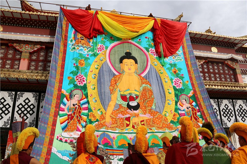 一大早,寺廟僧人身穿節(jié)日的盛裝,在莊嚴(yán)的鼓樂(lè)聲和誦經(jīng)聲中,僧眾們與廣大群眾仰望佛像,隨著黃綾的徐徐拉開,氣勢(shì)恢宏的巨幅佛像展現(xiàn)在眾人面前,預(yù)示人們平安吉祥,風(fēng)調(diào)雨順,安康幸福。