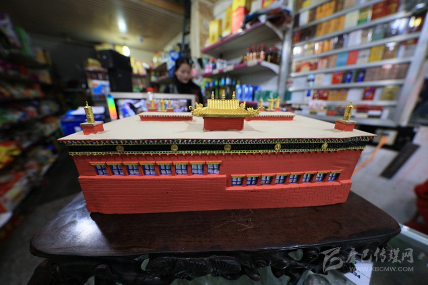偌大的德格印經院你能不能“請回家”?不能。那現(xiàn)在,你能把徳格印經院“請回家”了。2016年,德格手工藝人寸潤炳按照德格印經院原型,以1:5000的比例設計和制作完成了“德格印經院立體擺件”《三和·吉祥巴宮》。