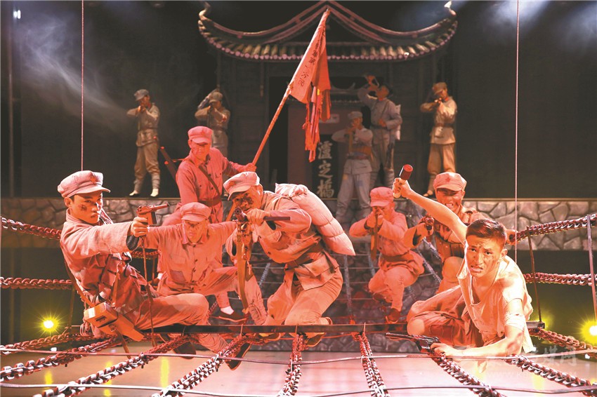 據(jù)悉,實景劇從5月29日開演以來,已演出162場,觀眾達1萬余人。“飛奪瀘定橋是紅軍長征濃墨重彩的一筆,紅色實景劇《飛奪瀘定橋》再現(xiàn)歷史,引起觀眾共鳴,助推了紅色旅游,讓更多的人了解那段輝煌歷史,激發(fā)愛國熱情?!憋w奪瀘定橋紀念館相關負責人郭成燕說。