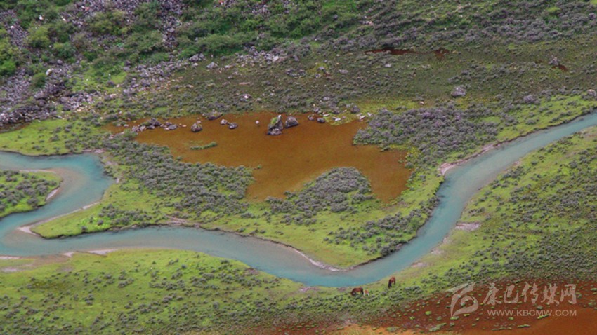 和白海子隔著一條山脊線,還有蛇海,它是蜿蜒在草甸上的一條小河,形如蛇狀。將這兩個海子串起來的徒步線路更受徒步愛好者的歡迎。