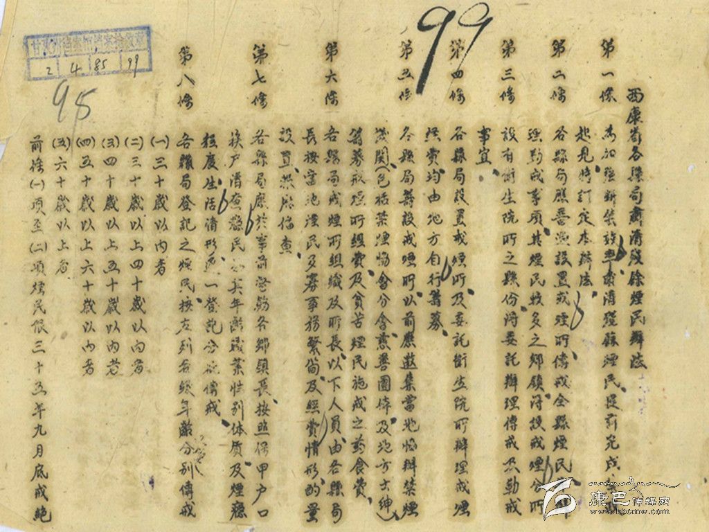 這一組檔案是在民國年間不同年代的禁煙令,有的出自于四川省、西康省,有的出于縣政府;有的以布告形式,有的以條告的形式,內(nèi)容不拘長短,都在強調(diào)禁煙。
