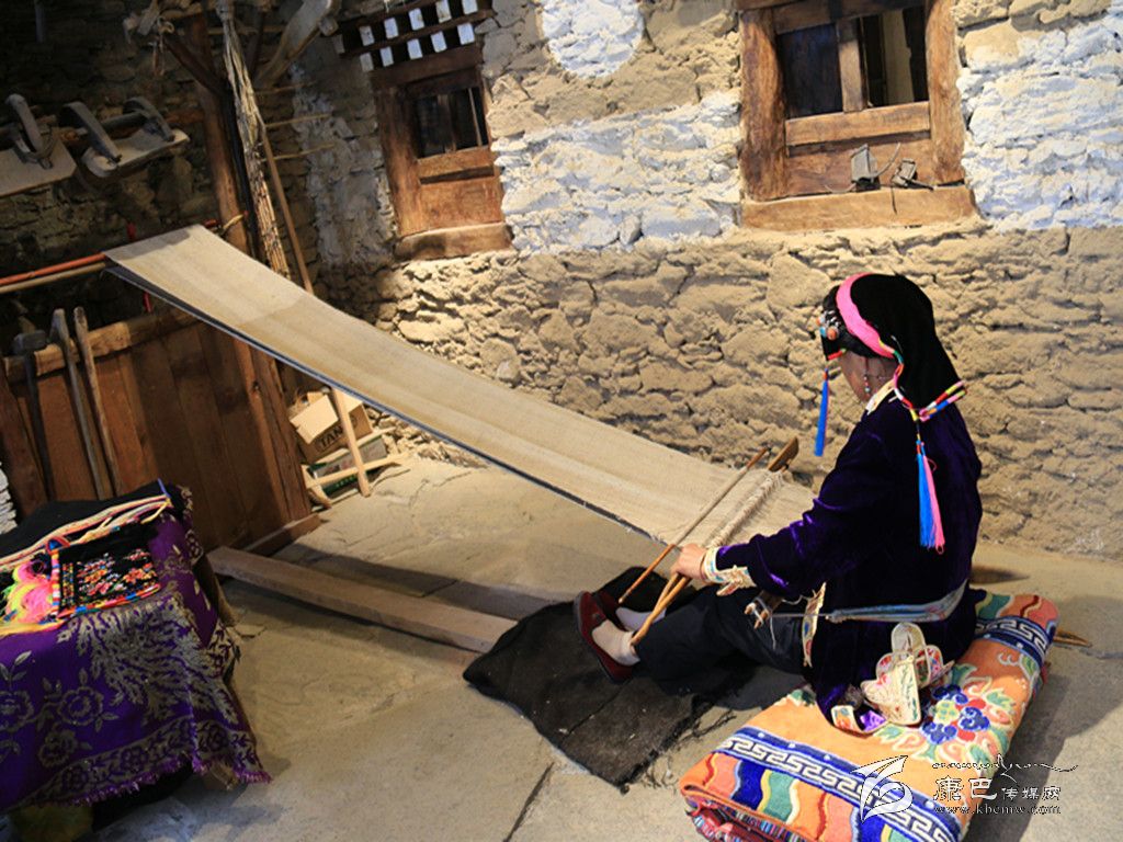 穿過(guò)古樸的大門(mén),步入館中,映入眼簾的是古老的民間紡織技藝。一位藏族老阿媽端坐在古董般的織布機(jī)前,聚精會(huì)神地編織布匹,見(jiàn)到游人微笑回應(yīng),并未停下她手上的工作。年逾60的擁天秀,從十幾歲便學(xué)習(xí)織布,此間從未間斷。隨著紡織機(jī)逐漸被淘汰,擁天秀已成為傳承這門(mén)古老技藝的“活化石”。非遺展示館開(kāi)館時(shí),擁天秀主動(dòng)表示,愿在此地免費(fèi)為游客展示丹巴紡織技藝。 “我喜歡丹巴刺繡和紡織工藝,平時(shí)在家里也會(huì)做,現(xiàn)在眼睛不很好,所以刺繡沒(méi)有辦法做了。游客們很喜歡在這里看我織布,他們有什么問(wèn)題,我都會(huì)給他們講解。”古老的嘉絨紡織技術(shù),通過(guò)擁天秀的雙手,漸漸被人們熟知,無(wú)數(shù)張游人與她的合影也被傳至網(wǎng)絡(luò)。經(jīng)她現(xiàn)場(chǎng)紡織,價(jià)值600元一匹的純手工布銷量也節(jié)節(jié)攀升,擁天秀研習(xí)多年的手工活在展示館中終于有了“用武之地”。