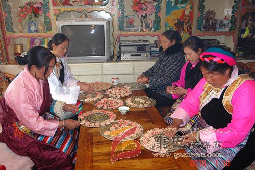 春節(jié)期間,巴塘人家都要將制作好的“花茹”作為上等貢品,擺放于神龕前,供奉神靈、祖先。小孩們更是對“花茹”情有獨鐘、愛不釋手,無論上街游玩、還是去觀看文藝演出,兜里都要揣上幾個“花茹”,既可當糕點食用,還可解餓,一舉兩得。