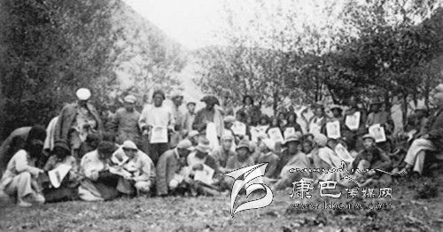 貢嘎山寺開學(xué)典禮 坐在第一排中間者為貢嘎活佛與于道泉(右)教授