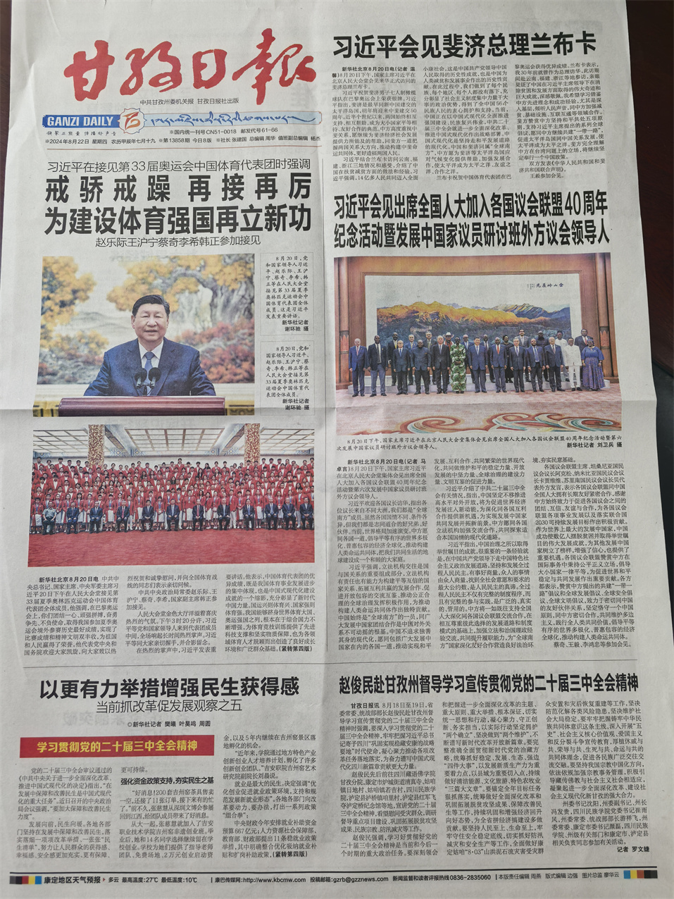 2024年8月22日出版的《甘孜日報(bào)》(第13858期)。楊燕 攝