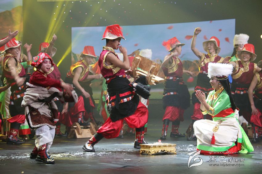 此次藏歷新年春晚被命名為“圣潔家園”,為了應(yīng)“家園”這個景,導(dǎo)演組頗有“心機”的將藏元素“和睦四瑞”搬上了舞臺,在開場舞中,兩個用石膏打造的、栩栩如生的“和睦四瑞”被演員緩緩?fù)粕衔枧_,贏得觀眾陣陣歡呼。在民間傳說中大象、猴子、白兔、貢布鳥共同發(fā)愿行持善法,貢布鳥鼓勵同伴們開始持守五戒,并一直堅持不懈動員其它眾生嚴(yán)守五戒。在它們帶動、勸說下,動物們都能漸漸做到互不損害、如理如法在木森林中和平度日,以其厲行善法之因,天人也降下和合雨水。后來,整個大地之上,莊稼豐熟、植物茂密、鮮妍之花滿目盛開,整個國家喜獲豐收、財富圓滿。晚會也是想利用“和睦四瑞”寓意人民生活團結(jié)和睦、和平寧靜的美好愿望。