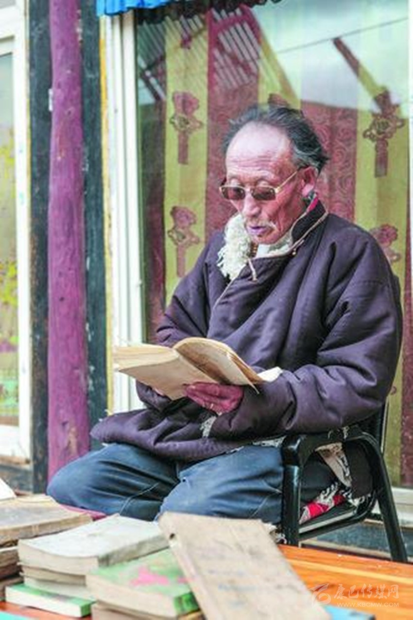 余音繞梁、鳴金收兵,天造地合的佳話叫人回味無窮。面對還沉浸在烽火邊關(guān)與兒女情長中的老人,真有一種不忍打擾的感動。幾十本從八十年代到二十一世紀(jì)由西藏、甘肅、青海、四川等民族出版社出版的各種藏文《格薩爾王傳》書籍,雖然有的邊角磨損嚴(yán)重,有的封面封底用塑料薄膜一針一線串起,卻沒有一本掉頁,更不要說有污漬灰塵了,揣摩著那一本本厚薄不一的書籍,如數(shù)家珍般逐一介紹書中的內(nèi)容,就算間隔30多年都還記得買書時的場景,足見老人對它的情有獨鐘。