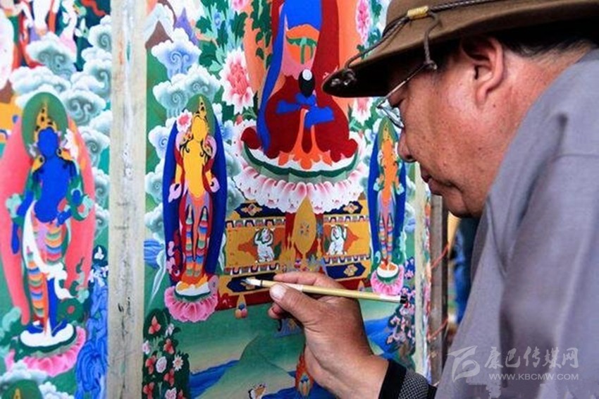 郎卡杰,出生地爐霍縣新都鎮(zhèn)朱巴村,是舉世聞名的唐卡畫師。 郎卡杰作品在線條構(gòu)圖、結(jié)構(gòu)布局、用色格調(diào)等各方面,無論是背景配置中意境神秘、形態(tài)自然,線條造型中剛?cè)嵯嗳荨⑷岷土鲿?,還是施色輕薄中色彩多樣、艷而不俗、沉著細膩、至今不失貴雅,甚至主題圖中的怒相張揚或文相飄逸,均達到寫實與表意、動物與靜物的完美結(jié)合。所以,郎卡杰大量的作品里流露著每個畫派的精髓,并且顯得渾然天成,聚示眾彩。更重要的是在此基礎(chǔ)上,要按十分嚴格的度量經(jīng)來作畫。