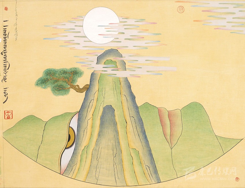15世紀以來,唐卡發(fā)展所恒定的兩個元素:一是平面構圖的神佛之境,另一則是吸收大青綠山水精髓。正如DNA鏈的雙螺旋結(jié)構一般,使唐卡繪畫在歷史時空中穿插縈繞,在雪域各地生根開花。到了公元20世紀初,照片的高度寫實促使藏地畫家邁出了革新步伐,使得唐卡繪畫逐漸擺脫傳統(tǒng)束縛,開啟了“人”的覺醒。衛(wèi)藏地區(qū)出現(xiàn)了“根敦群培、安多強巴”引入寫實主義的嘗試,成為當今西藏“布面重彩”的先驅(qū)。新中國成立后,內(nèi)地的美術創(chuàng)作積極影響了三大藏區(qū)的繪畫發(fā)展,上世紀80年代,四川康區(qū)“甘孜藏畫”肇起,在《嶺·格薩爾王》人文主義的召喚下,《雪山兒女》《唐東杰布》《新概念唐卡》正從歷史深處一路走來。而近年來,安多藏區(qū)則創(chuàng)新出了“藏族祥巴版畫”,祥巴版畫不僅是從材料技法上對西藏繪畫的豐富,更是藏地畫家們在自覺不自覺的求新、求變;甚至在傳統(tǒng)唐卡領域,民間畫師也都在紛紛嘗試將傳統(tǒng)唐卡和現(xiàn)代審美相結(jié)合。這一切,正是唐卡繪畫從傳統(tǒng)走向現(xiàn)代、由宗教博衍至生活的演變過程,在這個過程里,藏地畫家不僅在畫面的形式和語言上完成了傳統(tǒng)與當代的統(tǒng)一,還將西藏的審美特質(zhì)虹化為作品的精神內(nèi)核。這也是唐卡藝術第二次“從香巴拉到人間”的過程,成為民族文化發(fā)展的新坐標。
