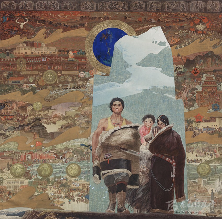 青藏高原有著曠遠弘大的人文地理,有著神秘久遠的宗教文化傳承,正是這蒼茫大地孕育了藏族人;正是這片極度追求審美體驗并把生活高度藝術化的疆域,滋養(yǎng)了西藏藝術。從早期的巖畫、旗幡畫、唐卡、壁畫,再到當代的丹青重彩,無不生發(fā)于這片神奇高原,皆是中華民族文化寶庫中燦爛的牟尼寶珠。唐卡繪畫肇啟于松贊干布隆興之時,向南學習印度、尼泊爾布畫,往西受到犍陀羅藝術浸潤,向東融合唐、宋、明、清之審美,再集藏地宗教文化、民族審美熔為一爐,鑄就一千三百年唐卡繪畫之法脈。它不僅是獨具魅力的藏文化之血脈源流,更是各民族文化交融、和諧互生的典范,對世界藝術有著深遠的影響。