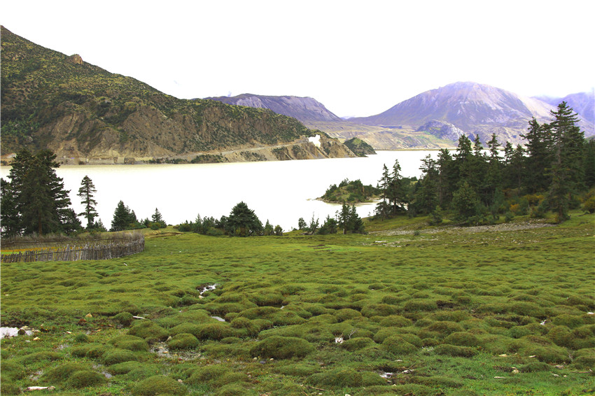 我一直走到村莊的盡頭,那里又是然烏湖的水域,湖邊有很多鵝卵石。我問了好些人才弄清“然烏”一詞的漢語的大意: “許多尸體堆積在一起”。據(jù)說這里曾是藏東南有名的水葬場,這也是它有名的另一個原因。歸去來兮,生死輪回,最后在這里仰望雪山草地,干干凈凈,一身清白,等候踏上去天堂的路。水葬是藏族古老習(xí)俗中三種殯葬方式中的一種,佛家講布施,天葬和水葬都含有布施的意義。藏民不吃魚也多是源于此。