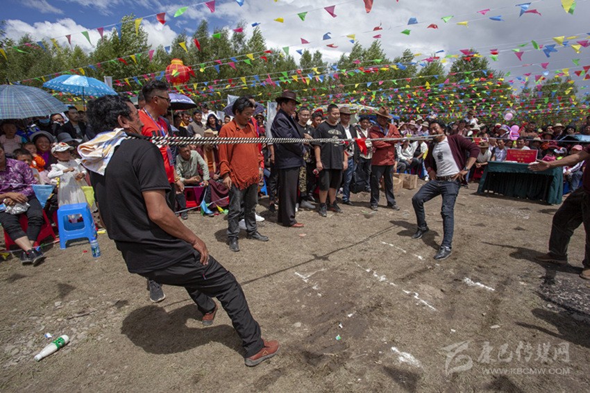 除以上活動(dòng),滾桶接力、俯撐馬鞍吃葡萄、穿藏裝揉糌粑、套牛角等趣味比賽無(wú)不展示民族體育的獨(dú)特風(fēng)格?!斑@種拔河還是第一次見,很有意思?!逼渲?,“格吞”比賽(把帶子套在脖子上拔河)深得觀眾喜愛。