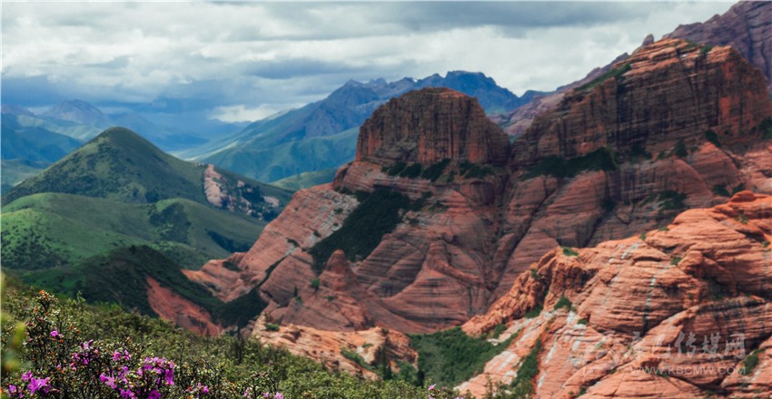 “快看,紅山千年之吻?!币晃挥浾咴隈R背上驚呼。抬頭望去,兩座紅山緊依而立,伴隨藍(lán)天、白云與綠草,構(gòu)成一幅絕妙美景圖;在距丹霞地貌最近的埡口處,大家紛紛下馬觀賞丹霞風(fēng)光?!皦延^震撼、鬼斧神工”,專家學(xué)者無(wú)不驚嘆贊絕倫,即便天氣不佳,海拔較高,他們時(shí)而交流討論、時(shí)而拍照留戀,高昂情緒一直持續(xù)。