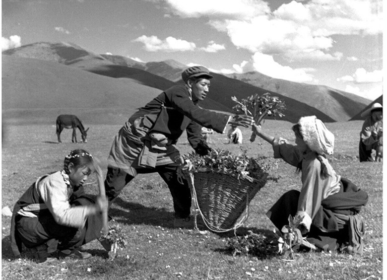色達(dá)縣達(dá)則公社的獸醫(yī)正在采集擦藥。(拍攝于1976年5月)