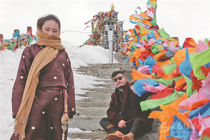 4月1日,攝制組一行來到外景拍攝地-康定市區(qū)的南無寺和318國道折多山頂。就“進(jìn)寺廟為什么要脫鞋”“藏族人為什么要撒隆達(dá)”等6個拍攝方案進(jìn)行現(xiàn)場拍攝。拍攝期間,從選景到構(gòu)圖,從服裝道具化妝到臺詞動作表情,從曝光度到快門速度,每一個細(xì)節(jié),攝制演職人員反復(fù)琢磨和演練,力爭達(dá)到最佳拍攝效果。經(jīng)過連續(xù)三天的拍攝,16集短視頻策劃順利完成。