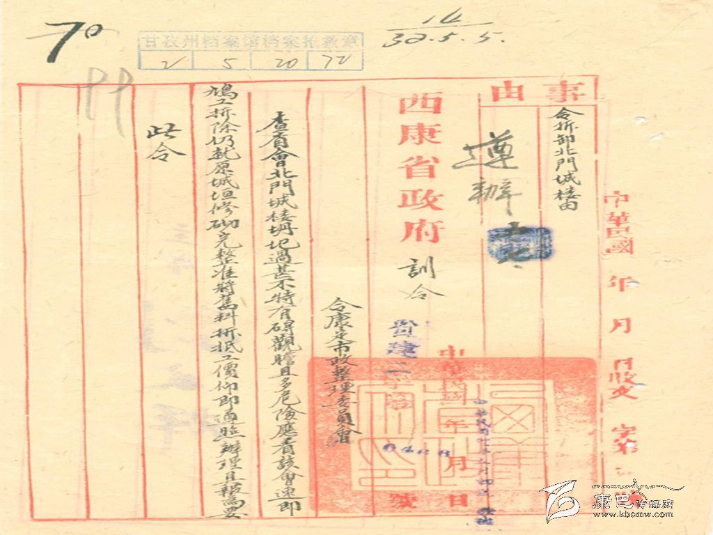 ■ 甘孜州檔案局提供資料 賀先棗 整理