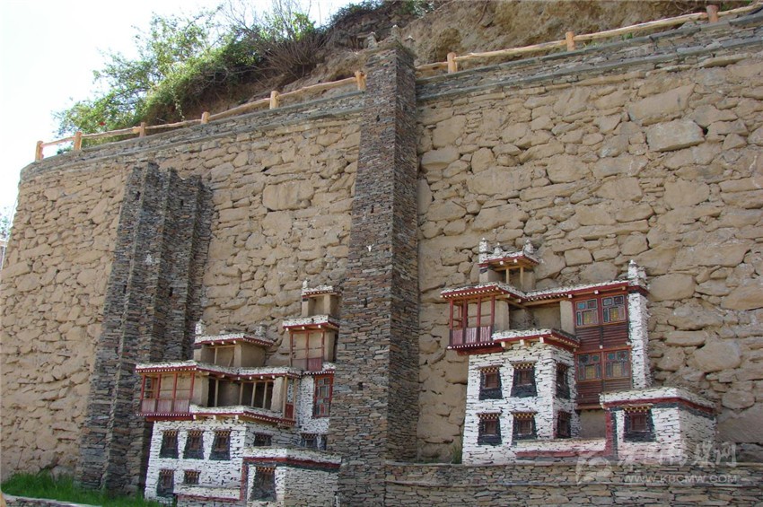 宋達村活動場所是一個寬約二十米,長約三十米的大壩,里面是高約十米的石砌圍墻,此時幾個工人正在忙碌著,幾座建筑模型已初見成形,最左邊是一座十三角碉的模型,一名工人坐在碉樓的樓頂上拿著手錘正奮力的敲打著眼前的石片,那石雕一半露在墻外,還有一半巧妙的鑲嵌在圍墻里。筆者走上前去,來到“碉樓”下,整座碉樓都是用灰色的石片砌成,每個石片間距一致,幾乎不見一點縫隙,充分展示了嘉絨人民高超的石砌技藝。十三角碉,顧名思義,就是整座碉樓由十三個角組成,在古時候是展示財富和地位的一種表現(xiàn)形式,砌墻的師傅非常健談,他告訴我,在嘉絨地區(qū),碉樓又以十三角碉最為罕見,據(jù)說,如今殘存的十三角碉全世界都只有三座,而其中保護得最為完整的尤數(shù)梭坡鄉(xiāng)普格頂村了,他頓了頓,伸出布滿青筋沾滿灰塵的手,往上指了指,自豪的說,它就在我們宋達村的山巔上,我不禁肅然起敬,為家鄉(xiāng)擁有這樣一座凝聚著嘉絨人民智慧結(jié)晶的古碉而激動不已。在十三角碉旁,是一座典型的嘉絨藏房模型,共有五層,第一層為關(guān)牛羊的畜圈,石砌匠人巧妙的將一樓門洞和排水口合二為一,即增加了美感,也增加了科學(xué)性。第二層樓房有兩扇窗戶,是人們飲食起居的重要場所。第三層樓房上有三扇窗戶,是儲藏糧食、臘肉的地方。每一扇窗按照比例縮小制成,當(dāng)筆者問匠人為什么嘉絨藏房的門窗都如此矮小時,他對此也娓娓道來。他告訴我,古時候嘉絨大地上混沌莫開、妖魔橫行,人們每天都在膽戰(zhàn)心驚中度過,那時候的房屋窗戶、門都修得異常的高大,夜幕降臨時,這些妖魔就從窗戶、門洞里爬進來,將熟睡的人擄走,后來嘉絨女王要求屬民們將窗戶和門洞改小,后來人們一直將此修建之法一直延續(xù)至今。第四層上是用木板、木頭作成的回廊,紅白相間,煞是美觀。第五層是堆放雜物的場所,石墻的每個角上都有石砌的尖角,如牛角一樣直指蒼穹,在尖角之間,有煨桑祈福的佛塔。再往右邊是一座四角碉的模型,由于只有四角,因此在修建中速度比十三角碉快了許多,那棱角愈發(fā)的鋒利。在嘉絨藏區(qū),這種碉樓是最常見的碉樓之一,碉樓藏語中稱為“邛籠”。早在2000年前《后漢書'西南夷傳》就有羌族人“依山居止,壘石為屋,高者至十余丈”的記載。碉樓多建于村寨住房旁,高度在10至30米之間,用以御敵和貯存糧食柴草。碉樓有四角、六角、八角幾形式。碉樓一般建于沿河谷高山或半坡有耕地和水源的地方,結(jié)合地形,利用有限的平臺,利用石頭筑成平頂。一般分成二層或三層,上層堆放糧食,中層住人,下層圈養(yǎng)牲畜,高二三丈,稱為邛籠;高的可有十三層,達十余丈,稱為碉。碉樓由專門的砌石匠修建,原料為亂石,用泥土粘合,不吊線,不繪圖,全憑經(jīng)驗,信手砌成。其壁面能達到光滑平整,不留縫隙,其堅固程度則可在川西這個地震多發(fā)區(qū)聳立數(shù)十年甚至數(shù)百年,經(jīng)歷數(shù)次地震仍然巍然屹立,有的已偏倚卻不倒,有的彎曲為弓,自成風(fēng)景。它按照功能分為戰(zhàn)碉、家碉、寨碉等。再往右邊走,是一座低矮的樓房,它也是嘉絨藏區(qū)最為常見的藏房之一,雖然低矮,然而其中的雕樓畫棟美不勝收。據(jù)縣農(nóng)辦負責(zé)人介紹,宋達村地處普格頂山腳下,省道線從門前經(jīng)過,山頂山有著為名遐邇的十三角碉,民風(fēng)純樸,因此該村要突出物質(zhì)文化引領(lǐng)經(jīng)濟建設(shè)的發(fā)展,為此打造碉樓文化及藏族民居文化,吸引大批游客走進村莊里,鼓勵村民自己建造有著嘉絨風(fēng)味的藏族民居,實現(xiàn)生產(chǎn)發(fā)展,這是新農(nóng)村建設(shè)的中心環(huán)節(jié),是實現(xiàn)其他目標的物質(zhì)基礎(chǔ),也是我們打造宋達村新農(nóng)村建設(shè)所思考的問題,我們也逐步在實現(xiàn)這目標。