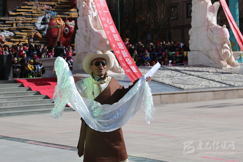 吉祥頌,藏語(yǔ)稱(chēng)為“協(xié)巴”,是州級(jí)非物質(zhì)文化遺產(chǎn)之一?!皡f(xié)巴”在藏族民間生活中占有重要的地位,尤其在喜慶活動(dòng)上,是一項(xiàng)不可或缺的重要儀式。州級(jí)非物質(zhì)文化遺產(chǎn)傳承人——高城鎮(zhèn)車(chē)馬村的翁堆老人手捧潔白的哈達(dá),為觀眾表演了《協(xié)巴——中國(guó)夢(mèng)、理塘夢(mèng)》,展現(xiàn)了時(shí)代變遷中,“吉祥頌”這一民間藝術(shù)在思想內(nèi)容和藝術(shù)手法的創(chuàng)新之美。