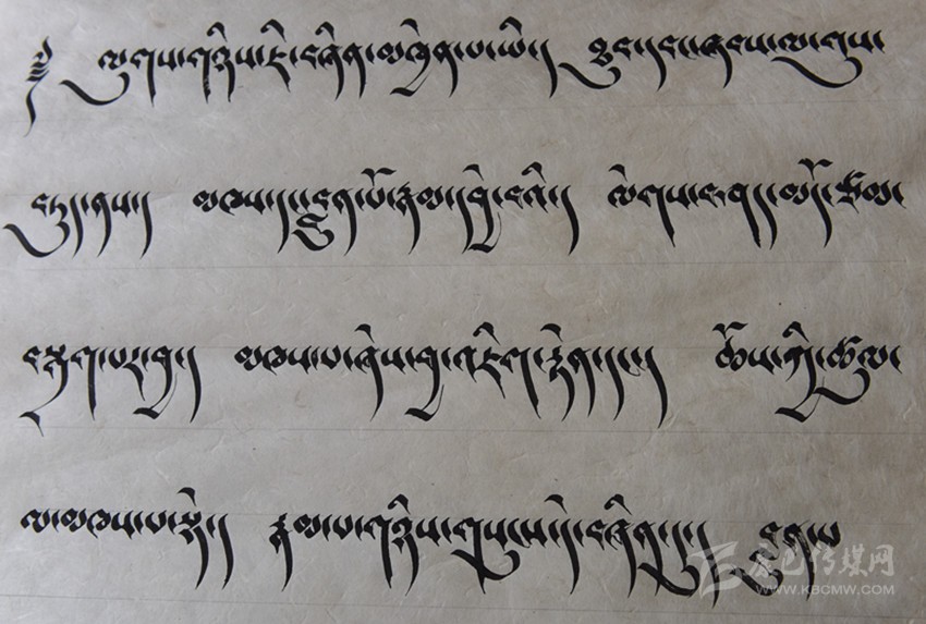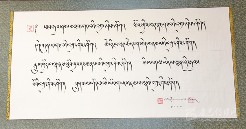 談到藏文書法作品,昂旺曲批喜歡用諸如“淳樸、干凈、善良”的字眼形容藏文書法作品的風格。“一個字就是一個人,字有肉也有骨頭。”這是昂旺曲批對“德珍派”書法的理解,在昂旺曲批眼中,藏文字都是有生命的,需要寧心靜氣方能通過手中的筆尖,彼此呼應。